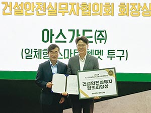아스가드는 지난해 스마트 안전 기술 분야의 선도적 성과를 인정받아 스마트 안전 분야 선도기업으로 선정되고, 지난해 국토교통부와 한국건설기술연구원이 주관하는 K-ConSafety 어워드에서 우수상을 수상한 것은 저희에게 매우 영광스러운 일이었습니다.