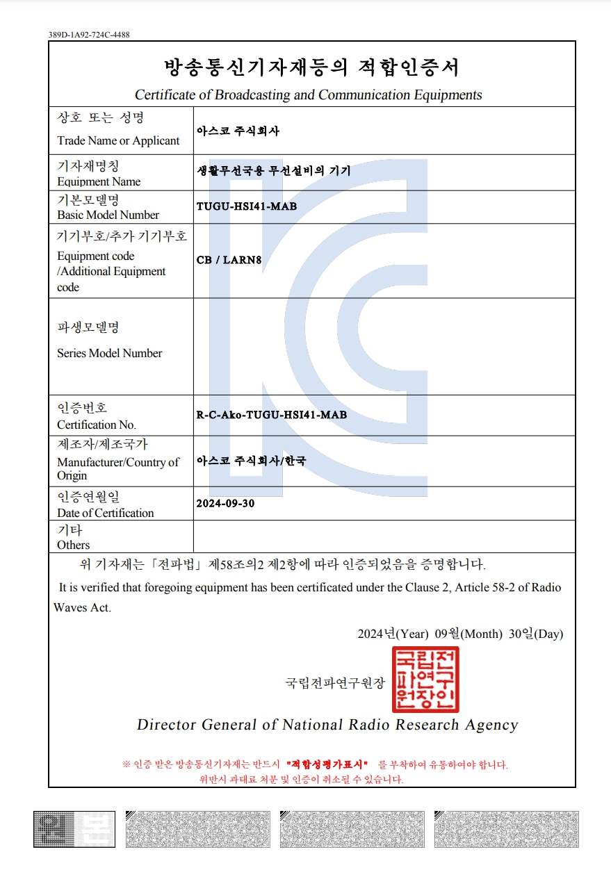 04.[TUGU-HSI41-MAB] 적합인증서(KC).pdf (279.0 KB)