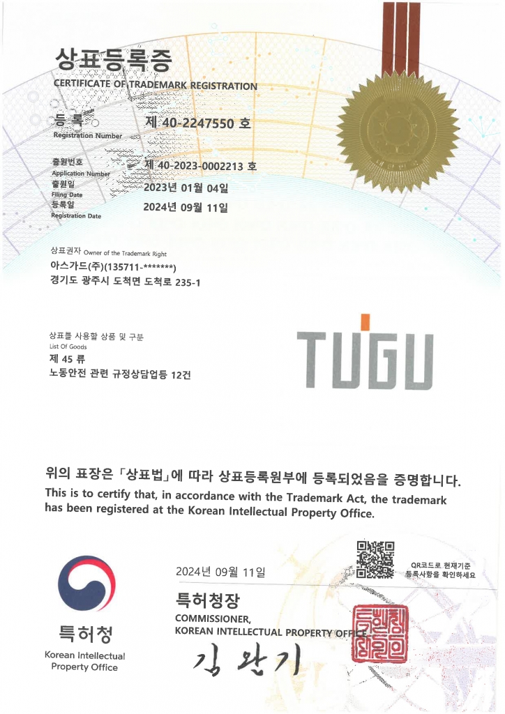 Certificado de registro de la marca TUGU_Servicio de seguridad industrial para i...