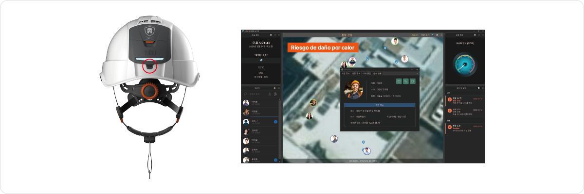 Medición de temperatura y humedad del lugar de trabajo mediante el sensor ubicado en la parte trasera del casco