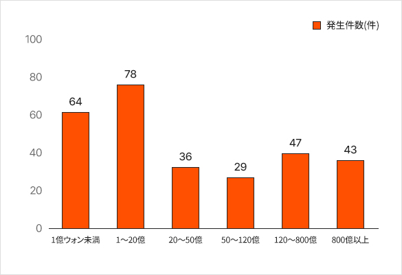 業種規模別では建設業の場合、工事金額が50億ウォン未で45人が減り、以上で7人がえた。